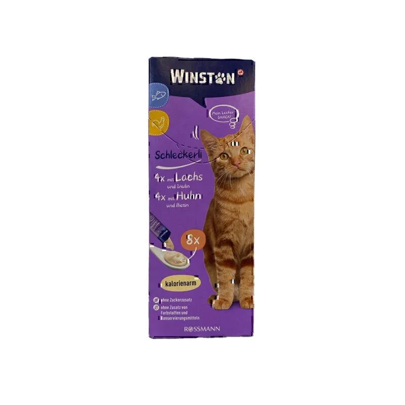 بستنی گربه وینستون با طعم مرغ و ماهی Winstone Chicken & Fish محصولی باکیفیت از برند معتبر Winston است که در کشور آلمان تولید میشود. این میانوعده سالم و خوشطعم با ترکیب طبیعی گوشت مرغ و ماهی، بیوتین و اینولین طراحی شده تا نیازهای تغذیهای گربههای بالغ را تأمین کند.