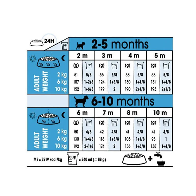 فرمول اختصاصی برای توله سگهای نژاد کوچک: مناسب تولههایی که حداکثر وزن آنها پس از بالغ شدن 10 کیلوگرم است.
