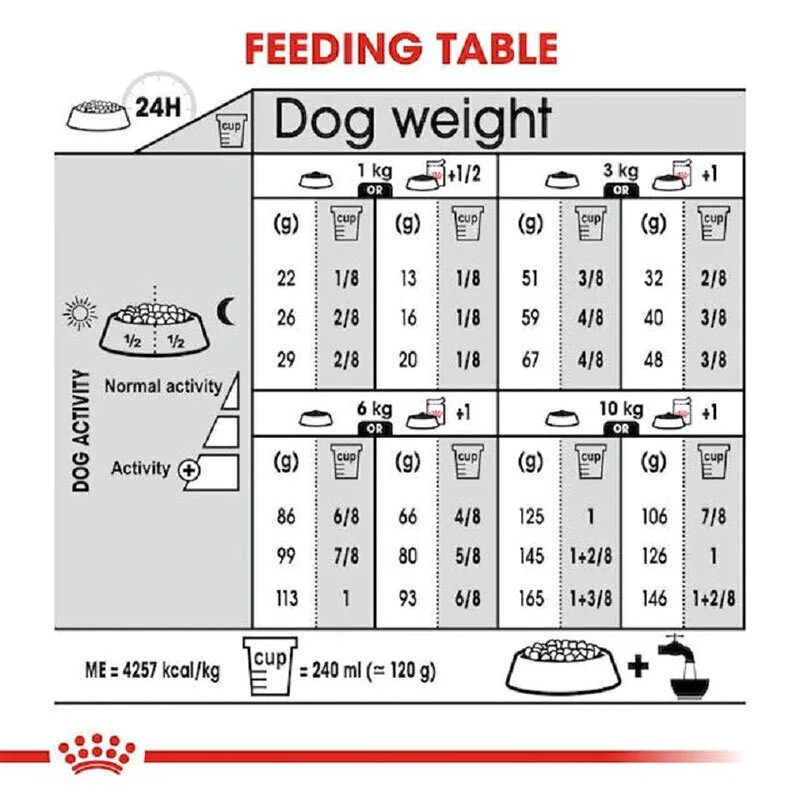 سگهای ۱ تا ۵ کیلوگرم: مقدار کمتر در وعدههای منظم