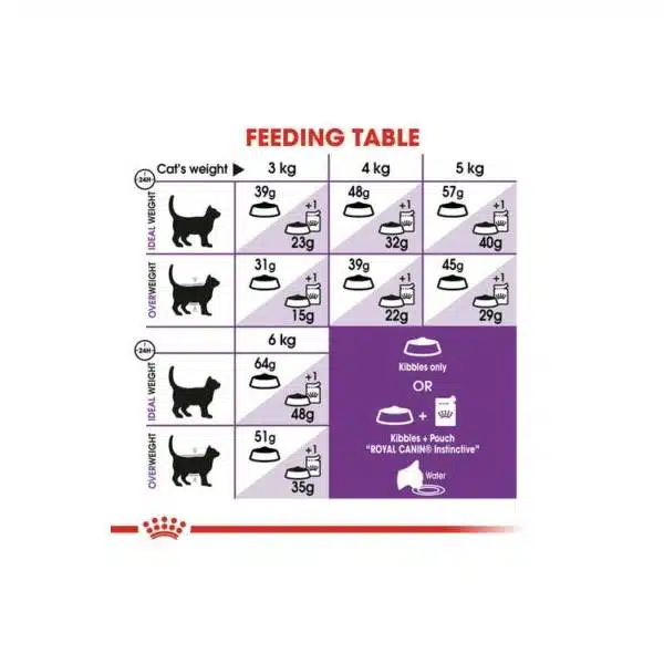 برای گربههای دارای اضافه وزن، مقادیر کمتر و برای گربههای فعال، مقادیر بالاتر مصرف شود.